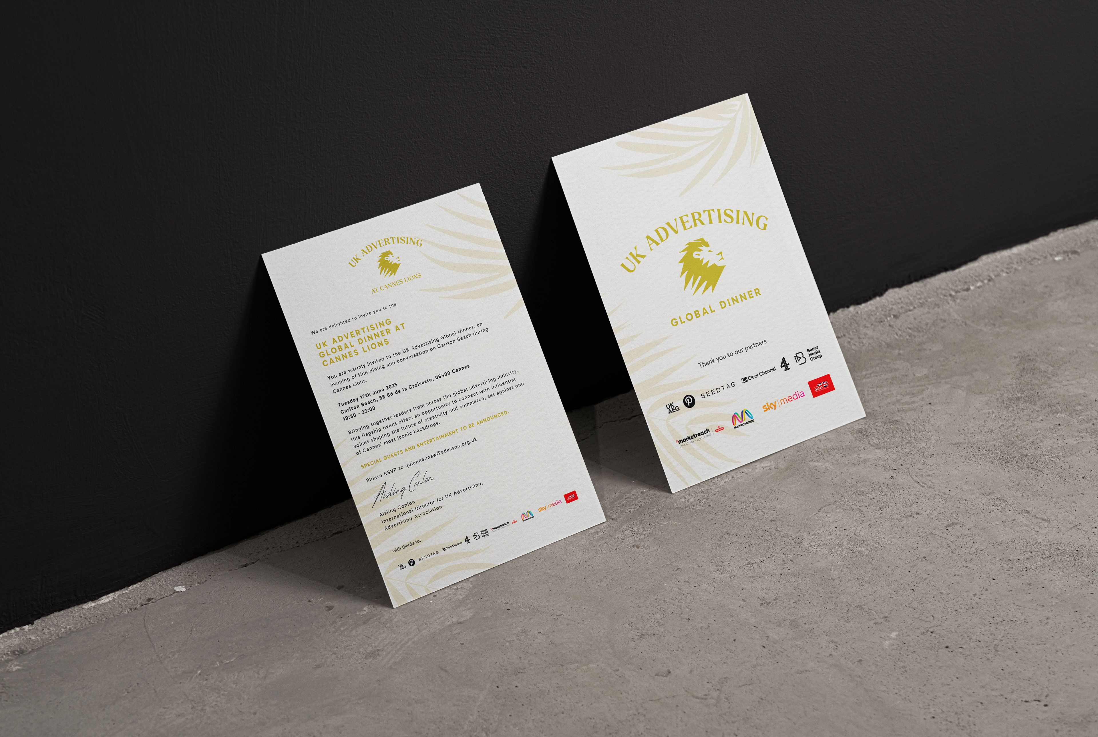 The UK is home to some of the most awarded, effective, and influential advertising in the world. UK Advertising felt their current branding didn't reflect the premium nature of their presence at Cannes Lions. By introducing a modern serif font and simplifying the iconic Lion as well as creating a more defined hierarchy of information we create more of a statement and a presence for the brand at Cannes. To expand the visual identity we introduce a palm leaf graphic as a nod to the location as well as bring depth to the identity.